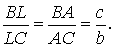 Sabemos que la bisectriz AL del ángulo A pasa por Q, ya que los ángulos BAQ y QAC miden lo mismo. Por tanto, QA es la bisectriz del ángulo A y, según el teorema de la bisectriz, tendremos que