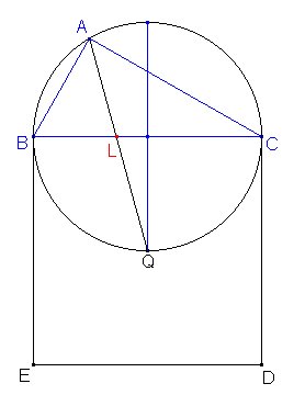 Si trazamos el cuadrado BCDE tal como indica el enunciado, su centro Q es también, en la circunferencia circunscrita a ABC, el centro del arco BC que no contiene a A.