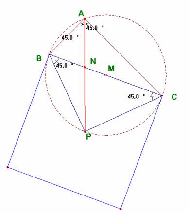triángulo). El centro del cuadrado está unido con el vértice del ángulo recto