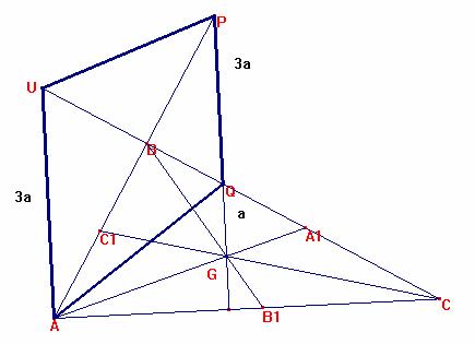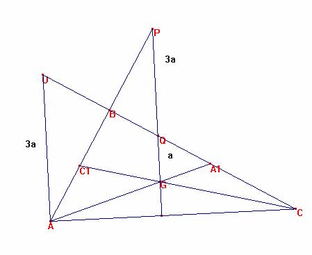 Supongamos que la figura cumple las condiciones del problema. Tracemos desde A1, punto medio de BC una semejanza del segmento QG de razón 3.