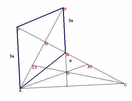 De esta manera, en el triángulo rectángulo PBQ es PB = 2AC1, BQ = AC1, PQ = 3a