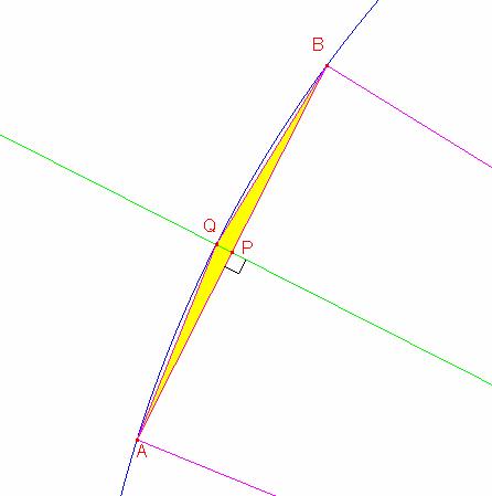 Sea AB la base del triángulo inscrito en la circunferencia entonces la mediatriz de este lado pasa por el centro de la circunferencia que lo inscribe y corta al arco de circunferencia AB en Q siendo el triángulo AQB otra solución. Al problema