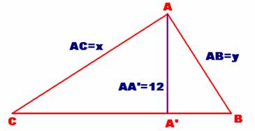 Como quiera que los triángulos AA’B y AA’C tienen un lado entero AA’ =12 y son semejantes al inicial ABC, con perímetro también un valor entero, no hay más remedio que el triángulo inicial ABC sea pitagórico, relacionado con el número 12 = 3∙4 y por tanto del tipo 3k, 4k; 5k.