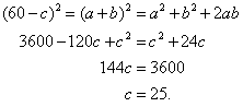 189. Calcular la hipotenusa y cateto de un triángulo rectángulo de perímetro 60 cms y tal que la altura del ángulo recto mide 12 cms. |