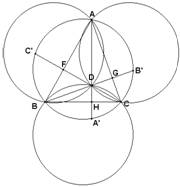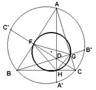 triángulo FGH formado por los pies de las alturas. Este triángulo se llama triángulo órtico. Sea el triángulo
