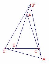 , prolongant una longitud x a a des de B, i obtenint C’, prolongant una longitud x a b des de C, obtenint A’, prolongant una longitud x a c des de A i obtenint B’ i el triangle