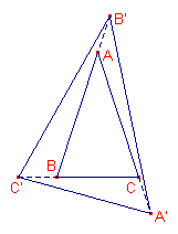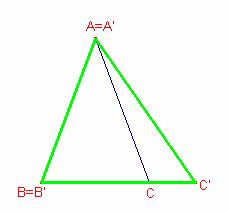 Sea ABC un triángulo isósceles siendo AB = AC . Hallar x real tal que si tomamos a + x , b + x , c + x , prolongando una longitud x a a desde B , y obteniendo C' , prolongando una longitud x a b desde C y obteniendo A' , y prolongando una longitud x a c desde A y obteniendo B' , el triángulo A'B'C' sea isósceles, siendo B'C' = B'A' .