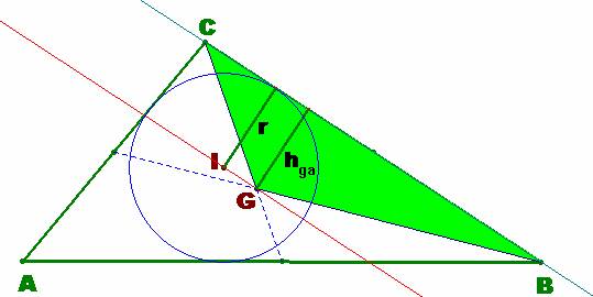 Este hecho indica que los puntos I (incentro) y G (baricentro) distan lo mismo del