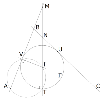 Si además se cumple que: 1/IM2 + 1/IN2 = 1/r2, donde r = inradio de ABC, probar que ÐB=90º. |