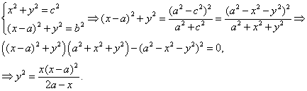 Terminaremos hallando la ecuación de la curva obtenida. Para ello consideramos a B como origen de coordenadas y a BC como eje x. Entonces, B=(0, 0) y C=(a, 0). Si A=(x, y) entonces