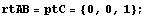 Al resolver el problema con coordenadas baricéntricas no imponemos a M tal limitación, y lo dejamos estar en cualquier punto de la recta AB. De esta manera, aparecerá una solución para B distinta del ángulo recto vaticinado por el enunciado.