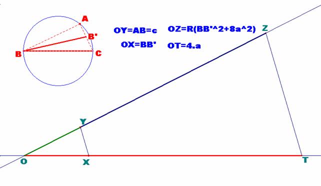 Luego c=AB es la cuarta proporcional entre los segmentos BB’;  y  4∙a.