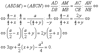 Que U está en MN equivale a decir que U es el centro de una proyección de la recta AB sobre la recta AC en la que A, B, D, M se proyectan sobre A, E, C, N. Como las proyecciones, caso particular de las proyectividades, conservan las razones dobles, será
