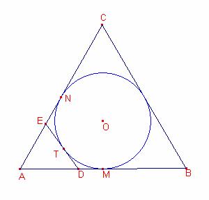 circumferència Q inscrita del triangle. Siga T el punt de tangència del segment