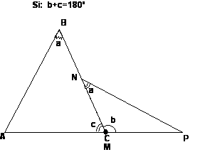Para demostrar los segmentos BC y MN los hacemos coincidir de manera que los puntos M y C también coincidan entonces obtenemos la siguiente figura