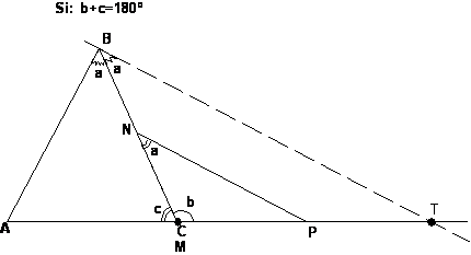 Luego prolongamos MP y por B trazamos la paralela al segmento NP que se corta en el punto T