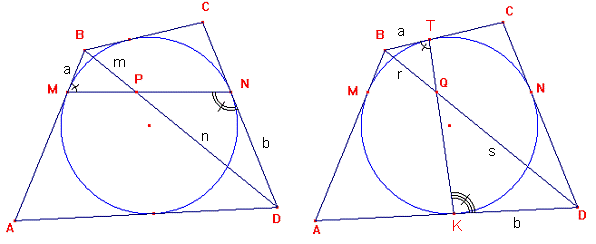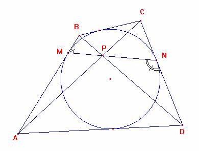 Con lo que demostramos que en todo cuadrilátero las diagonales y el segmento que une los puntos de tangencia son concurrentes