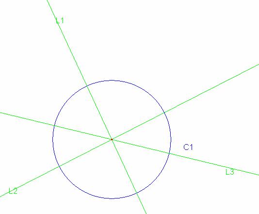 Sea C1 la circunferencia dada y L1, L2 y L3 las rectas que pasan por el centro del círculo dado