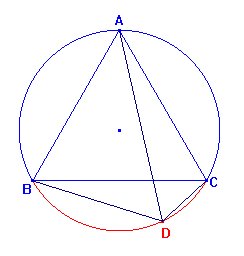 | Si ABC es un triángulo equilátero, hallar el lugar geométrico de un punto D tal que DA = DB + DC. |