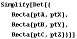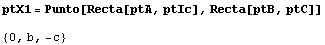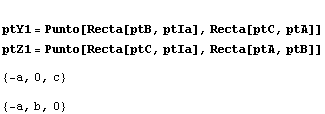Para empezar por lo más fácil, podemos calcular la perspectriz de los triángulos ABC y XYZ, es decir, la recta en la que se alinearán las intersecciones de AB y XY, BC y YZ, CA y ZX.