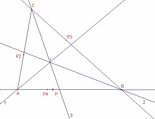 La recta que pasa por los puntos A, P2 corta la recta 3 en el punto C.