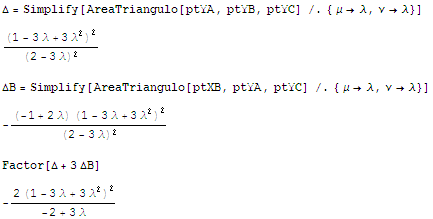 por lo que resultaque 1 - 3l + 3l2 es la razón de homotecia de los triángulos X(A)X(B)X(C) y ABC.