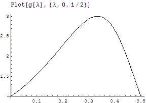 Para abreviar, diremos que el cociente de las áreas comienza siendo 1, crece, alcanzando un máximo igual a 3 para l = 1/3 y vuelve a decrecer hasta el valor inicial de 1 para l = 1/2.
