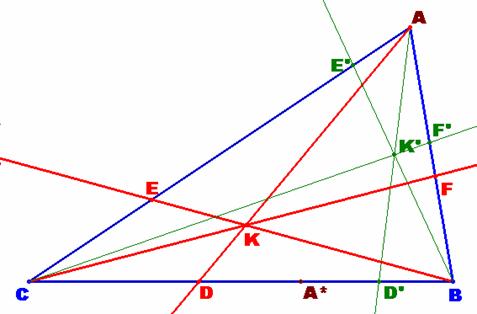 cevianas AD, BE y CF concurren en el punto K entonces, por el Teorema de Ceva