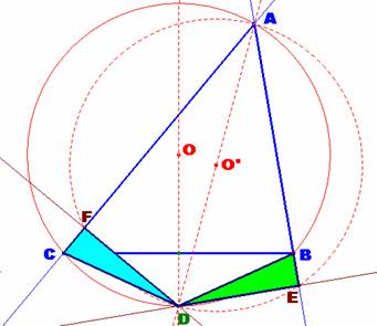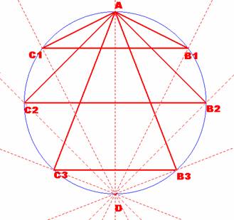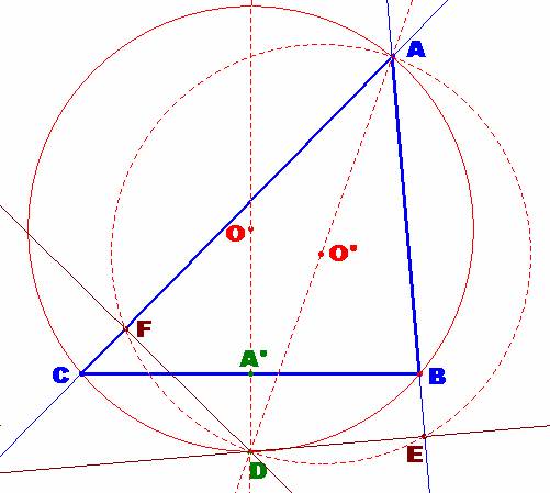 circunferencia circunscrita K. Se traza la bisectriz de A que corta a K en D. Tracemos