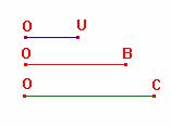 dados los segmentos OU como unidad, y los segmentos OB=b y OC=c