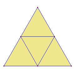 Dividimos el triángulo equilátero dado en cuatro triángulos iguales uniendo los puntos medios de los lados. Estos son los palomares, cuatro en total.