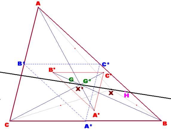 respectivamente, probar que los puntos G, G*, X y X* son colineales, y,