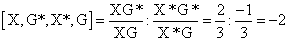 puntos G, G*, X y X* son colineales, y, calcular su razón doble. Calculamos ahora su razón doble: