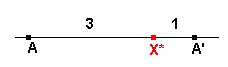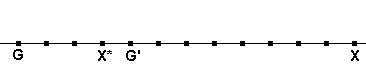 Así, GG' : G'X = 3:6 = 1:2 y GX* : X*X =1:3. Por tanto, los puntos quedarían así a lo largo de la recta: