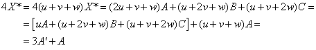resultando X* = (2u + v + w : u + 2v + w : u + v + 2w).