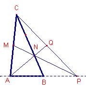 en el punto N. Aplicando el teorema de Ceva al triángulo