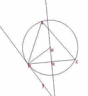 Construyamos el triángulo ORB con OR perpendicular a BC y OB radio que es perpendicular a BT.