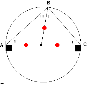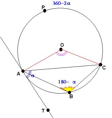 Y como un caso especial cuando la cuerda AC se convierte en diámetro entonces los ángulos ÐABC=ÐCAT=90