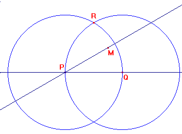 En primer lugar, para trazar dos rectas que forman un ángulo de 30º, elegimos un punto Q sobre una de ellas y trazamos las circunferencias con centros P y Q y radio PQ, que se cortan en un punto R. Ahora trazamos la recta que pasa por P y el punto medio de QR.