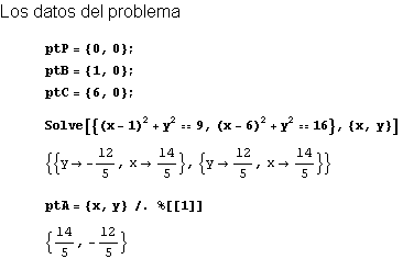 Usemos Cabri Géomètre para resolver el problema. Al final, como complemento, se incluyen instrucciones de Mathematica para mostrar otra forma de enfocar el problema.