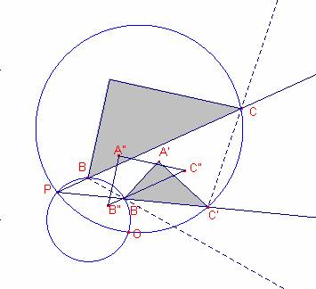 vèrtexs B, C del primer disten de P, PB=1, PC=6, i els vèrtexs B’, C’ del
