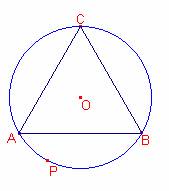2) Si un triángulo equilátero está inscrito en una circunferencia, la suma de los cuadrados de los segementos que unen cualquier punto de la circunferencia a los tres vértices del triángulo es constante.