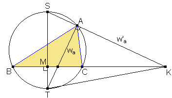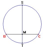 A continuación trazamos el diámetro ST perpendicular a BC y el punto medio M de BC.