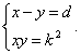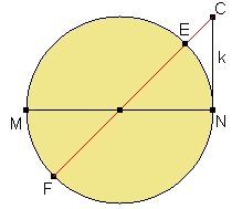 Según vemos en el libro de Bruño, para realizar esta construcción, trazamos una circunferencia con diámetro MN = d. Por el punto N trazamos una perpendicular NC = k y unimos C con cel centro de la circunferencia hasta volver a cortarla en F. Entonces tendremos CF = x y CE = y.