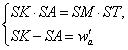 Ahora podemos usar la construcción previa con SU y w'a, de manera que marcamos en la recta TS un punto W tal que SW = w'a, trazamos una circunferencia con diámetro SW y unimos U con el centro de dicha circunferencia hasta cortar otra vez a la misma en V. El segmento UV será igual a nuestra distancia SK.