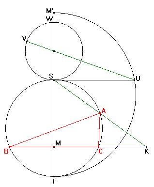 La perpendicular por S a TM' corta en U a la semicircunferencia y SU es la media geométrica de SM'=SM y ST.