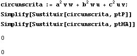 Comprobamos que el punto P y el ortocentro HA pertenece a la circunferencia circunscrita a ABC: