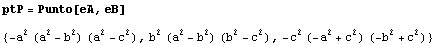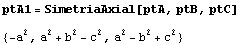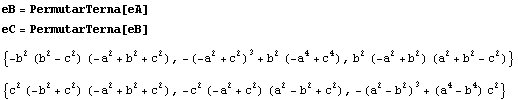 En lugar de repetir los cálculos para los otros vértices, permutamos las coordenadas y las letras en el resultado hallado para el vértice A: