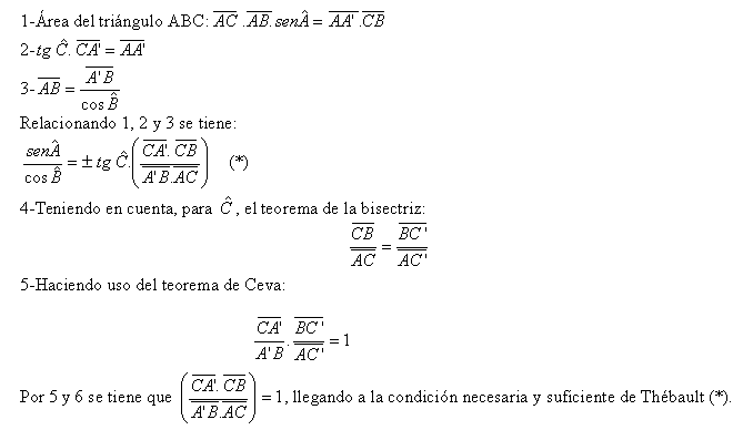 | Problema 292: Mostrar que la condición necesaria y suficiente para que la altura AA', la mediana BB' y una de las bisectrices del ángulo C de un triángulo ABC sean concurrentes es que sen A /cos B = + o - tang C. Thébault, V. (1949): Mathematics Magazine. Vol. 23, No. 2, Nov. - Dec., 1949, p. 103 . |