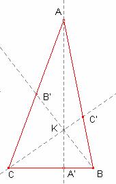 Sean los puntos A’ de la recta BC, C’ de la recta AB